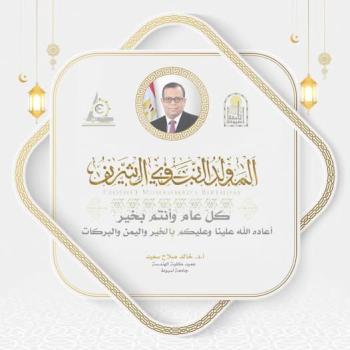 يتقدم الاستاذ الدكتور خالد صلاح عميد الكلية بخالص التهاني لجميع منتسبي الكلية بمناسبة المولد النبوي الشريف .. وكل عام ومصر بخير