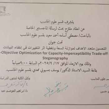 يعلن قسم نظم المعلومات عن انعقاد سمينار تسجيل نقطة البحث لدرجة الماجستير الخاصة / للباحث عبد الرحمن حسن محمد بقسم نظم المعلومات