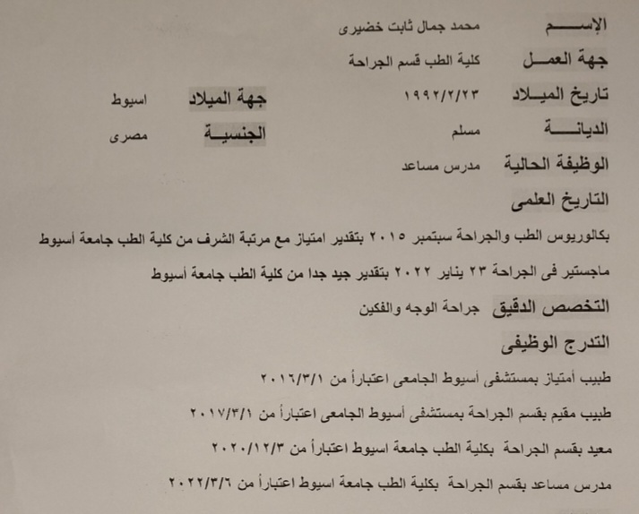 | مدرس مساعد , كلية الطب , جامعة اسيوط , 2022 |
