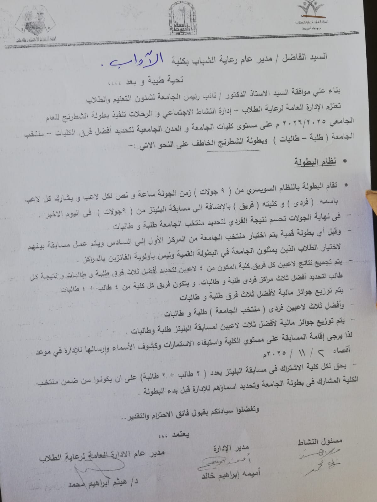 اختيار كلية الآداب بجامعة أسيوط