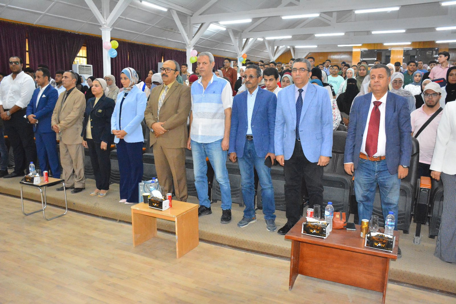 يرحب اتحاد طلاب الجامعة مع رئيس الجامعة ونائب رئيس الجامعة، ويرافقهم عمداء الكليات ووكلائهم بالأهالي والوافدين الجدد الذين اختاروا الانضمام إلى الجامعة لتكون علامة فارقة في حياتهم المهنية، في احتفال سنوي يقام خلال أول 3 أسابيع من السنة الأولي لإمدادهم بكافة التفاصيل عن اتحاد الطلاب، وكلية الآداب، والأقسام، والمقررات وكيفية النجاح فيهم. يقام حفل الاستقبال قبل 20 أكتوبر منذ الساعة 10 صباحاً و2 ظهرًا.