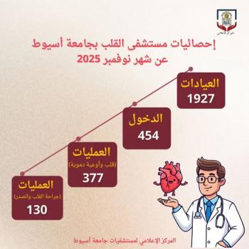 خلال يونيو الماضي... مستشفى القلب بجامعة أسيوط يستقبل (١٧١٣) حالة بمختلف عياداته