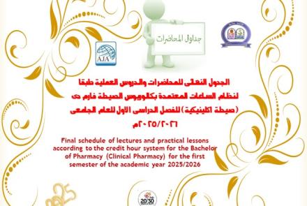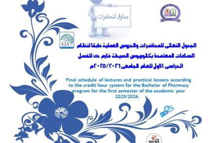 The Faculty of Pharmacy - Assiut University is considered a scientific and cultural radiation center and a beacon for pharmaceutical education in its surrounding environment at the level of the governorates of Upper Egypt and the pharmaceutical factories located in the region. It is also proud to be the third faculty of pharmacy at the level of the Arab Republic of Egypt in terms of establishment and the third faculty at the level of Assiut University to obtain accreditation from The National Authority for Quality Assurance and Accreditation of Education, with the approval of the Authority’s Board of Directors in its session No. (102) dated 9/27/2011, it is the third faculty of pharmacy to obtain accreditation among the faculties of pharmacy at the level of the Republic and the first faculty at the level of Assiut University to obtain a renewal of the accreditation certificate from the Authority. National Education Quality Assurance and Accreditation, with the approval of the Authority’s Board of Directors at its session No. (168) on 7/19/2017. The certificate was also renewed for the second time by session No. (622) on 6/21/2023.