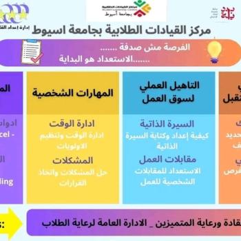 تنظم ادارة اعداد القادة بالإدارة العامة لرعاية الطلاب بالتعاون مع وزارة الشباب والرياضة ومركز القيادات الطلابية بالجامعة دورة تدريبية لطلاب الجامعة فى التاهيل لسوق العمل بالتعاون مع مركز التطوير المهني خلال الفترة من ٣٠ اكتوبر الى ٦ نوفمبر 2025