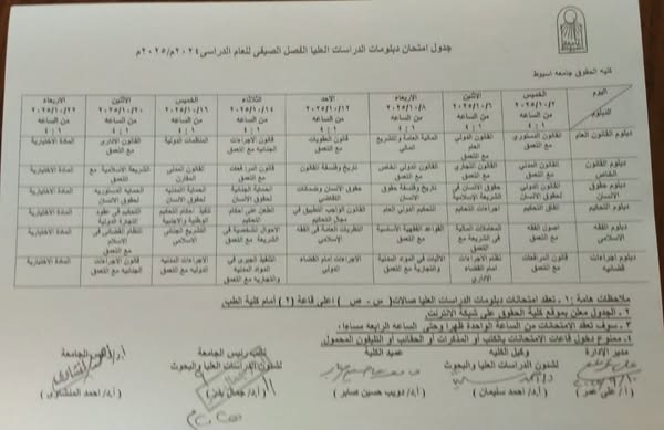 جدول امتحان دبلومات الدراسات العليا الفصل الدراسي الصيفي للعام الجامعي 2024 /2025