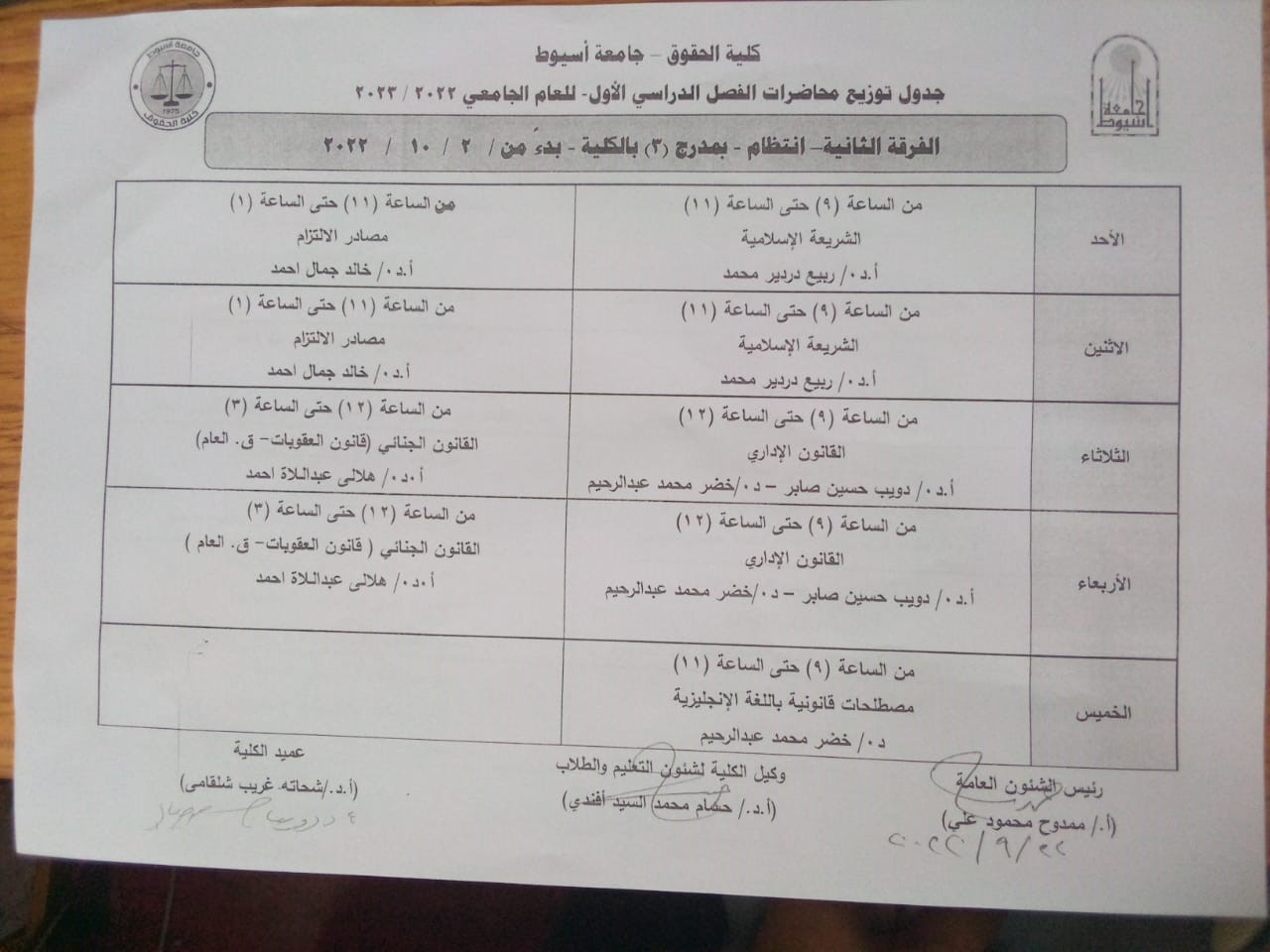 Schedule of lectures for the first semester of the academic year 2023/2022, second year regularity 25 September 2022
