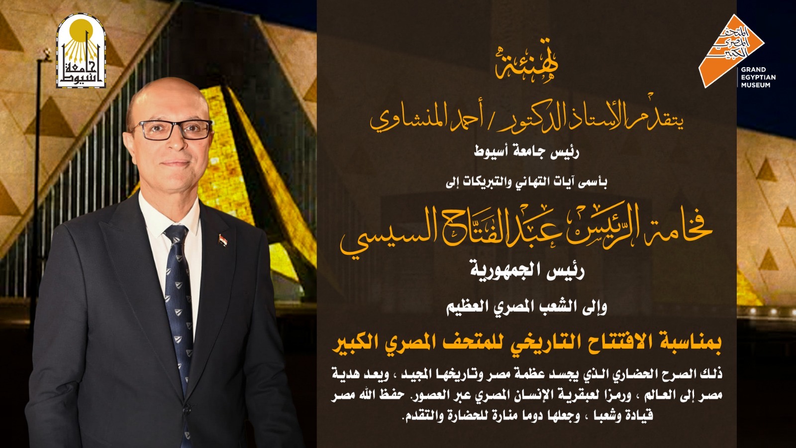 الدكتور المنشاوي يُشارك أسرة جامعة أسيوط احتفاءها بالافتتاح التاريخي للمتحف المصري الكبير من مركز النيل للت