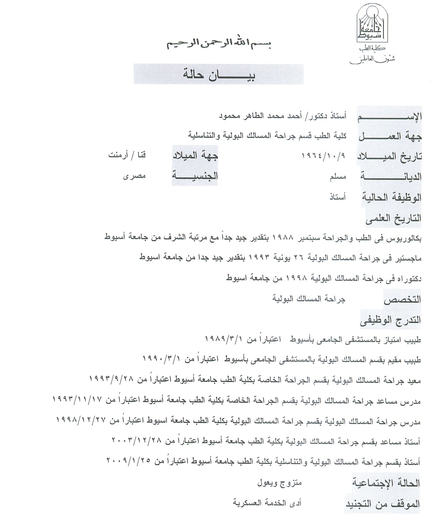 Assistant Lecturer Faculty of Medicine, Assiut University , 1993