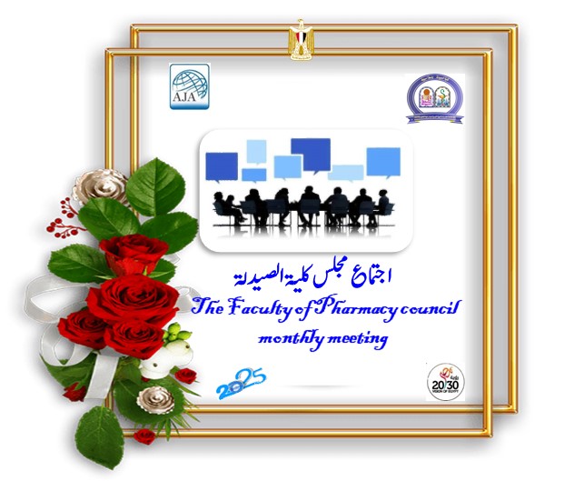 The Faculty of Pharmacy council monthly meeting on Sunday, November 16, 2025 2025-11-13 God willing, the Faculty of Pharmacy council will hold its monthly meeting on Sunday, November 16, 2025 at 10:30 (AM) in the Hall of Faculty Council, 5th floor, administrative building