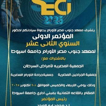 دعوة لحضور المؤتمر الدولي السنوي الثاني عشر لمعهد جنوب مصر الأورام جامعة اسيوط بالاشتراك مع الجمعية المصريه لأمراض السرطان