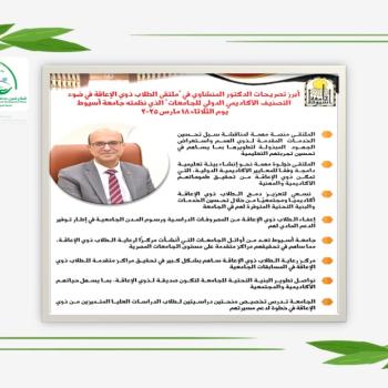 Key Statements by Professor Ahmed El-Minshawy at the “Forum for Students with Disabilities in Light of International Academic University Rankings” Held by Assiut University on Tuesday, March 18, 2025