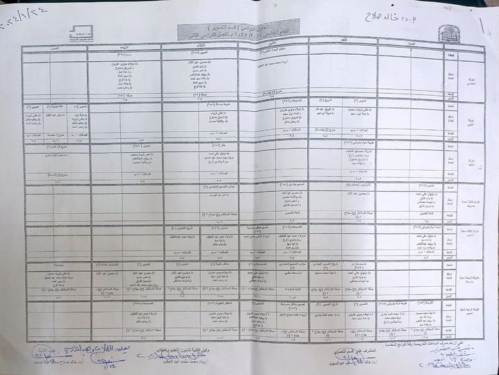 الجدول الدراسى- لقسم التصوير - الفصل الدراسى الثانى - العام الجامعى 2023م-2024م