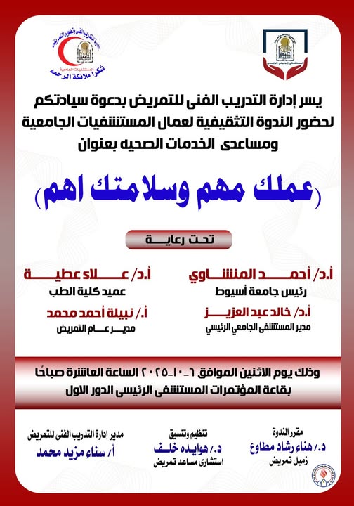 يأتي هذا في إطار حرص مستشفيات جامعة أسيوط على التطوير المهني والرفع من مستوى الوعي لدى جميع الكوادر العاملة بالمستشفيات.