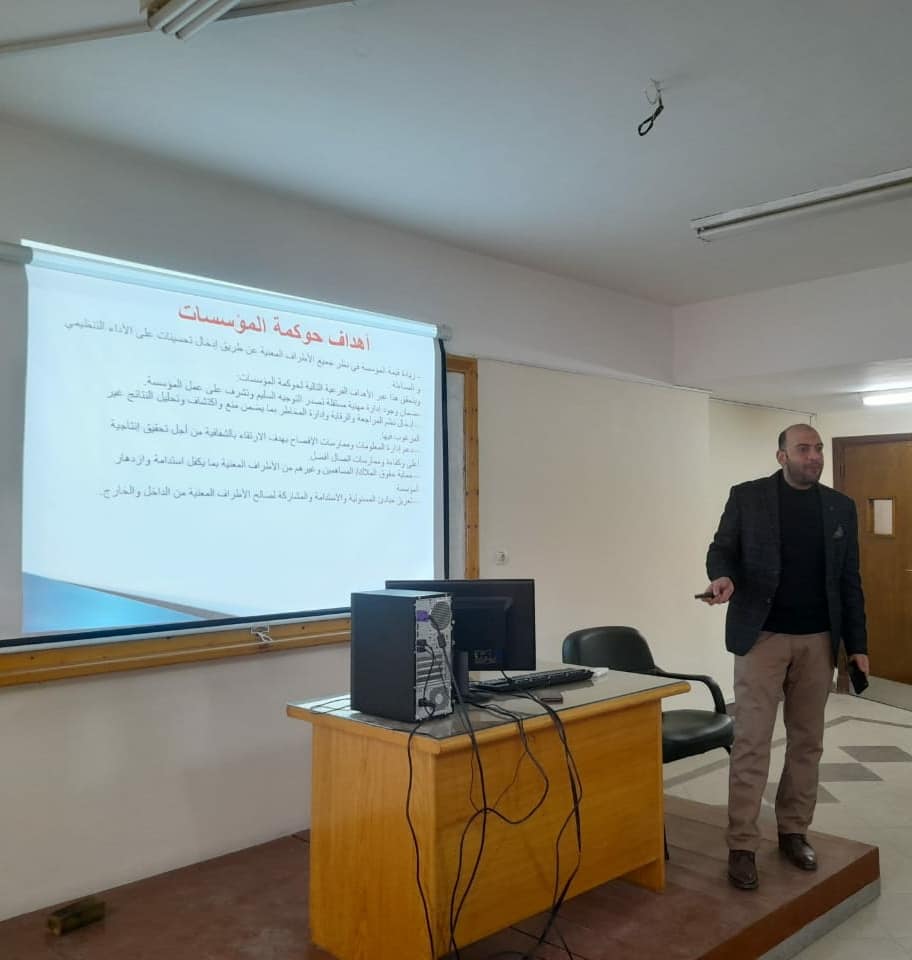 حاضر فيها الدكتور عبدالحكيم عبدالستار نائب مدير المستشفى للشئون الإدارية والجودة، وتضمنت المحاضرة عدة موضوعات منها؛ التعرف على التسلسل الوظيفى، ووظيفه مجلس الاداره واللجان النوعيه، ومحور المراجعه الداخليه، وإدارة المخاطر، ووسائل التحكم داخل المستشفيات، إلى جانب محور التنميه المستدامه بمكوناته، وأيضاً محور الافصاح والشفافية والطرق المختلفه للشفافية.