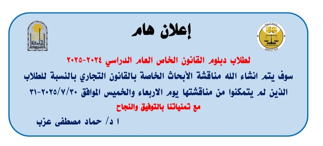 لتحميل المواد الدراسيه الخاصه بكليه الحقوق جامعه اسيوط للفرق الاربعه عربي - انجليزي