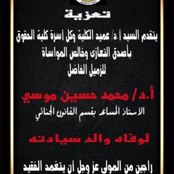 تعتزم كلية الحقوق بمناسبة اليوبيل الذهبي للكلية اقامة فعاليات المُبارة النهائية لمسابقة التحكيم…