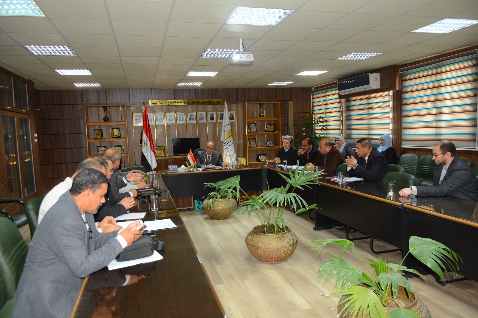 تحت رعاية الدكتور أحمد المنشاوي رئيس جامعة أسيوط، عقد مجلس إدارة مركز المؤتمرات ودار الضيافة اجتماعه الدوري عن شهر ديسمبر ٢٠٢٥، وذلك لمتابعة سير العمل وبحث سبل تطوير الخدمات المقدمة والارتقاء بها، بحضور الدكتور محمد عدوي نائب رئيس الجامعة لشئون خدمة المجتمع وتنمية البيئة، والدكتور عادل محمد محمود عميد كلية الزراعة، والأستاذ شوكت صابر أمين عام الجامعة، وأعضاء المجلس.