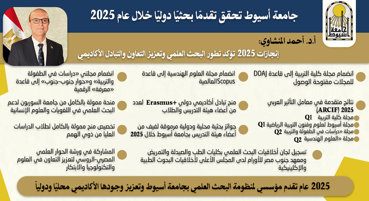 جامعة أسيوط تحقق تقدمًا بحثيًا دوليًا خلال عام 2025
