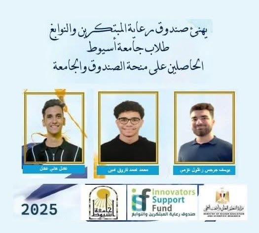 فوز ثلاثة من طلاب كلية الهندسة بجامعة أسيوط بالمنحة الدراسية المقدمة من صندوق رعاية المبتكرين والنوابغ للع