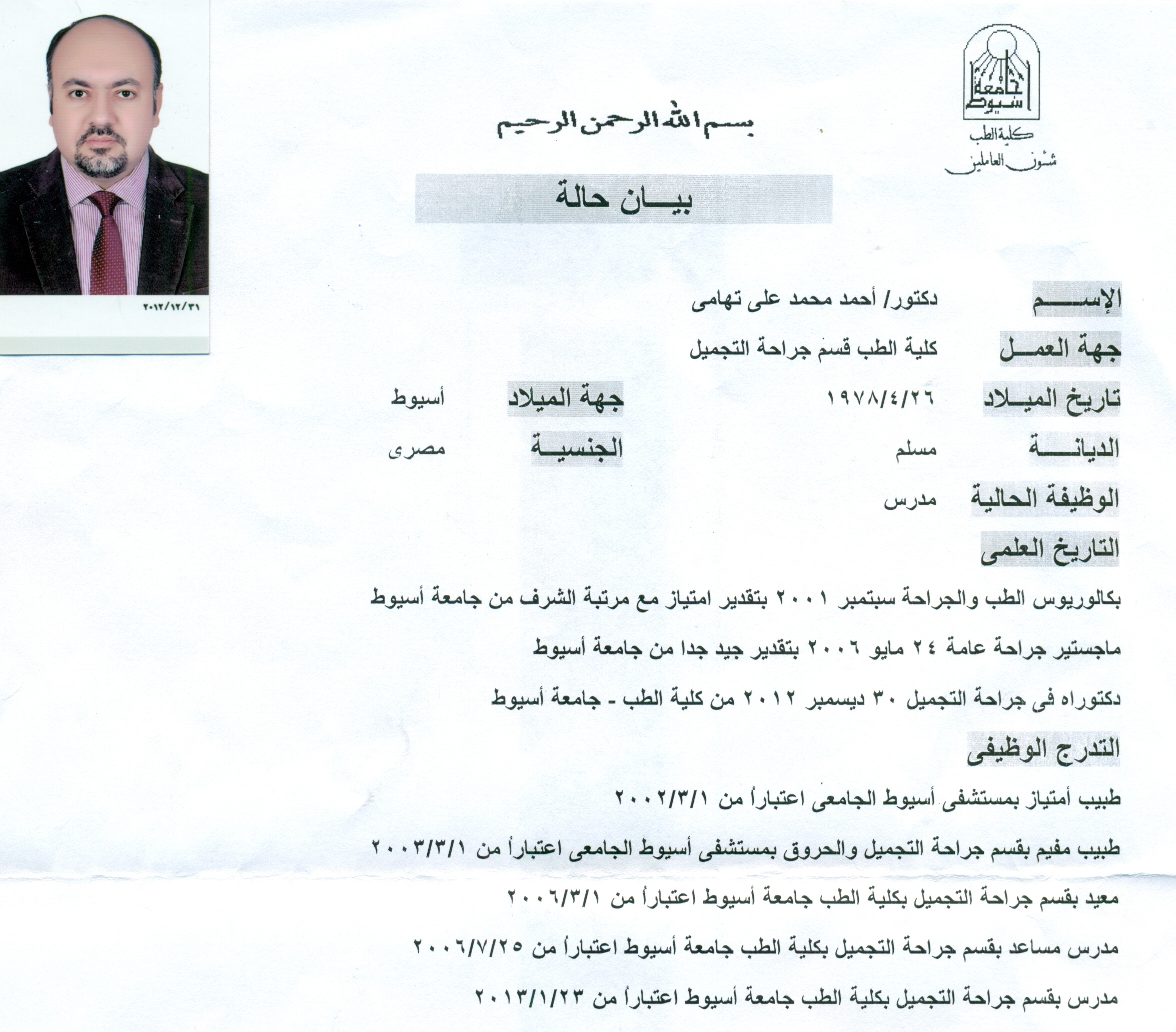 Lecturer Faculty of Medicine, ِِAssiut University , 2013