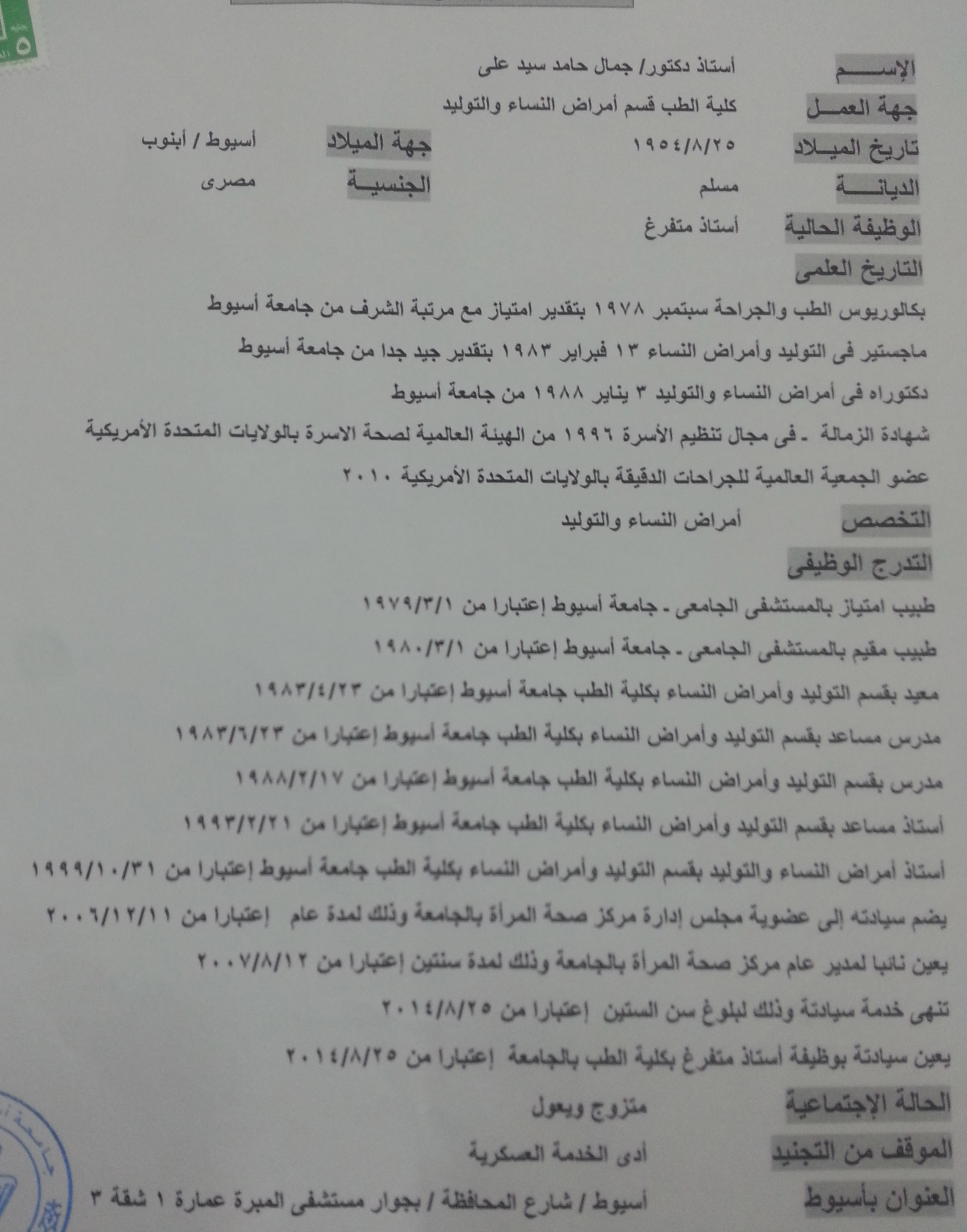 أستاذ متفرغ كلية الطب , جامعة أسيوط , 2014