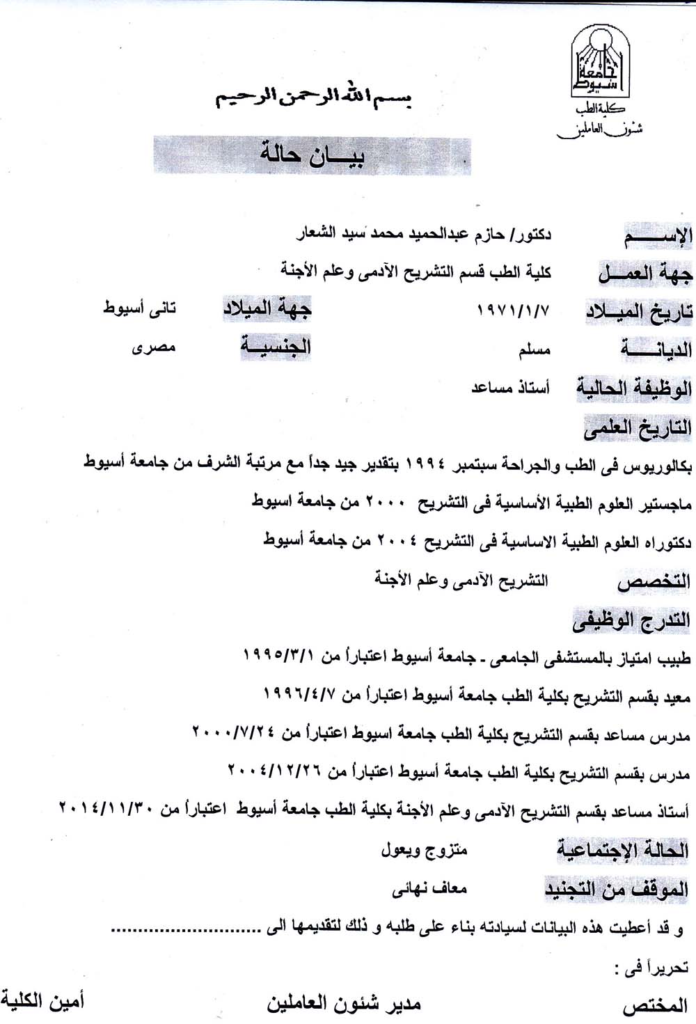 Associate Professor Faculty of Medicine, ِِAssiut University , 2014