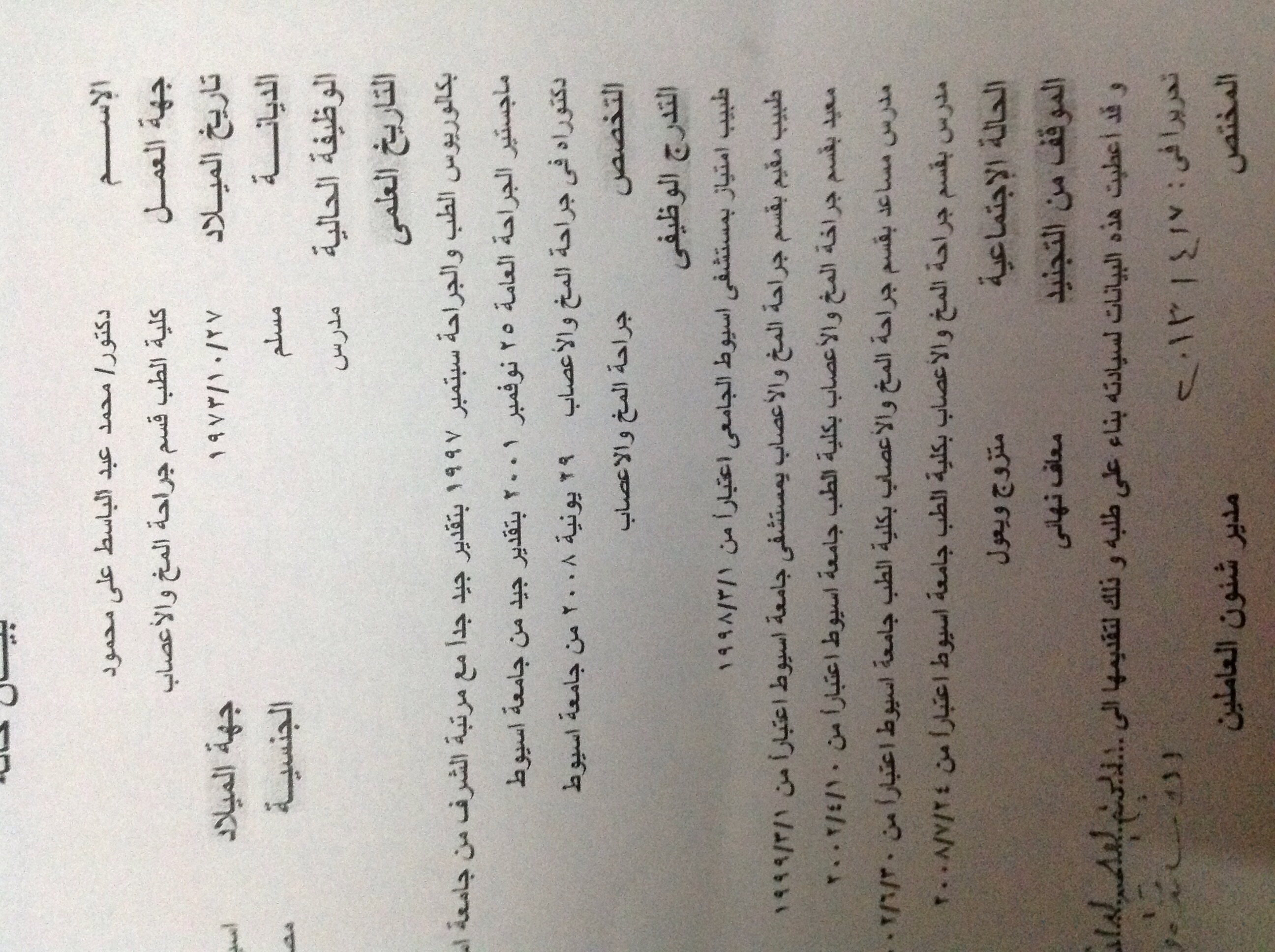 دكتوراه ﻒﻳ جراحه المخ و الاعصاب (جراحه المخ و الاعصاب) , كليه الطب جامعه اسيوط , 2008