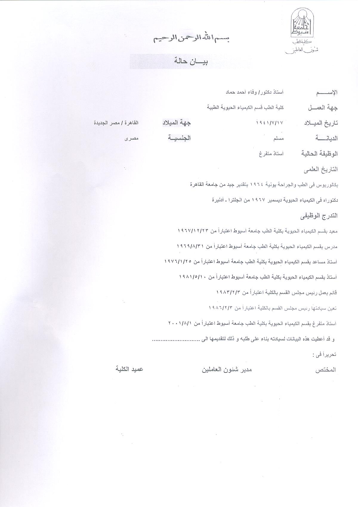Professor Faculty of Medicine, Assiut University , 1983