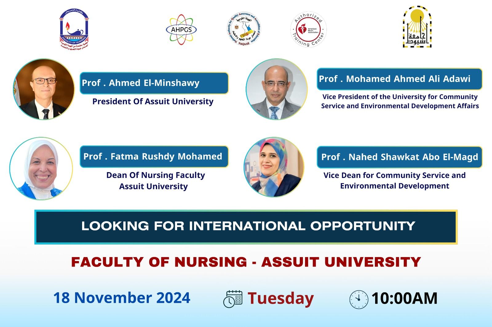 انتظرونا غداً فى يوم التوظيف الثاني برحاب كلية التمريض - جامعة أسيوط وموضوعات متعددة بعنوان (البحث عن فرص عمل دولية).
