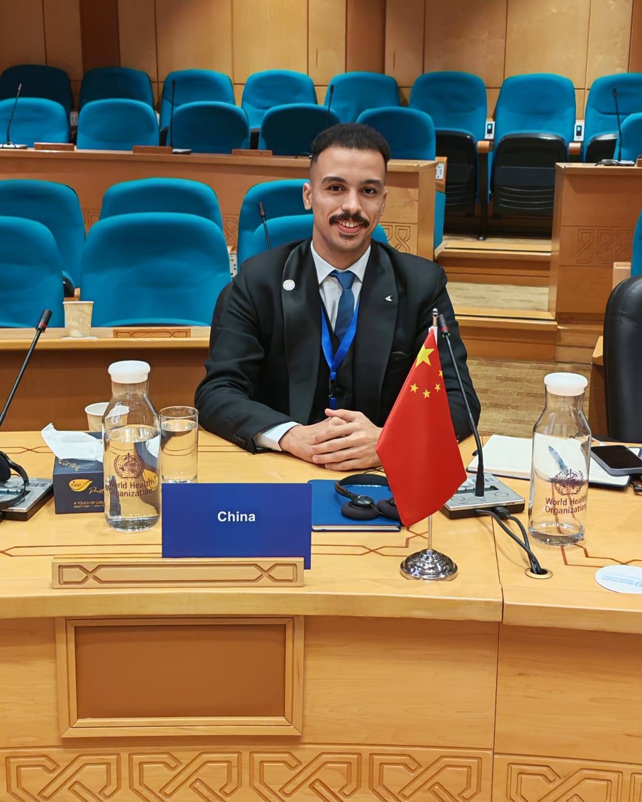 وقد أظهر الطالب تميّزًا ملحوظًا من خلال مشاركته الفاعلة في المفاوضات والنقاشات الدبلوماسية، ساعيًا لتحقيق التوازن بين الشفافية والسيادة والعدالة الصحية، ضمن رؤية دولية موحّدة لمواجهة تحديات الصحة العامة عالميًا.