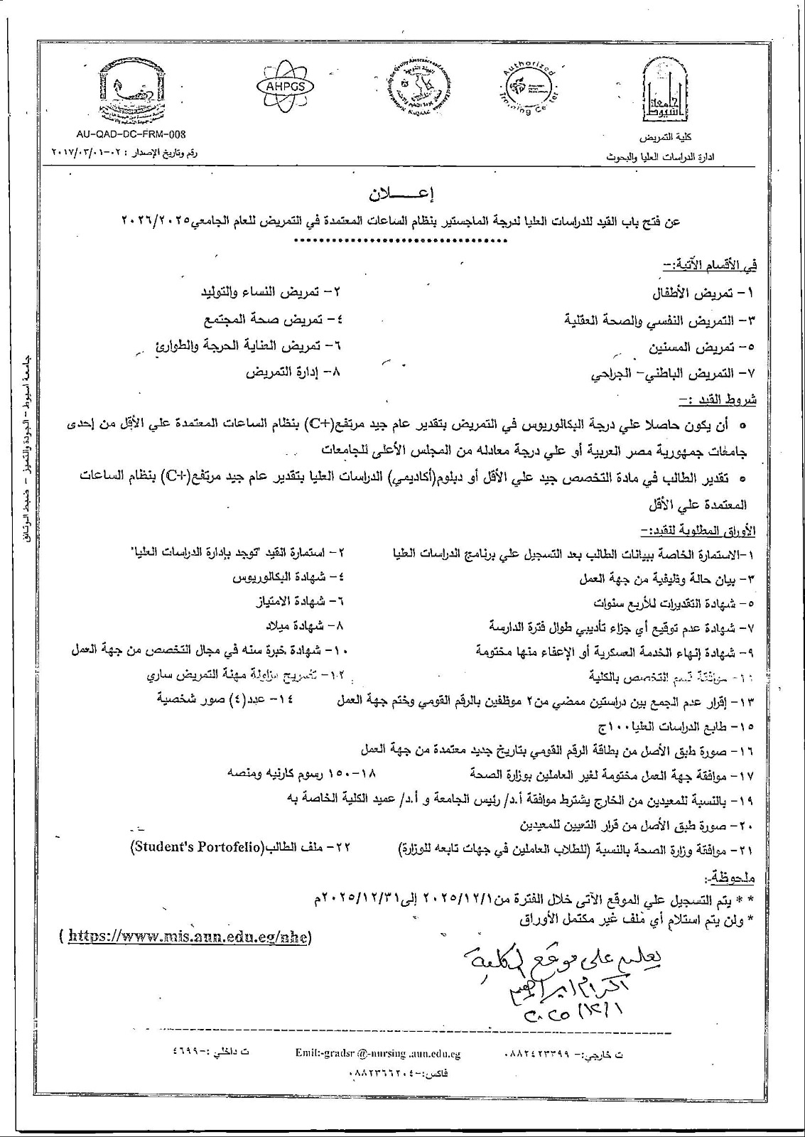اعلانات التقدم للدراسات عليا