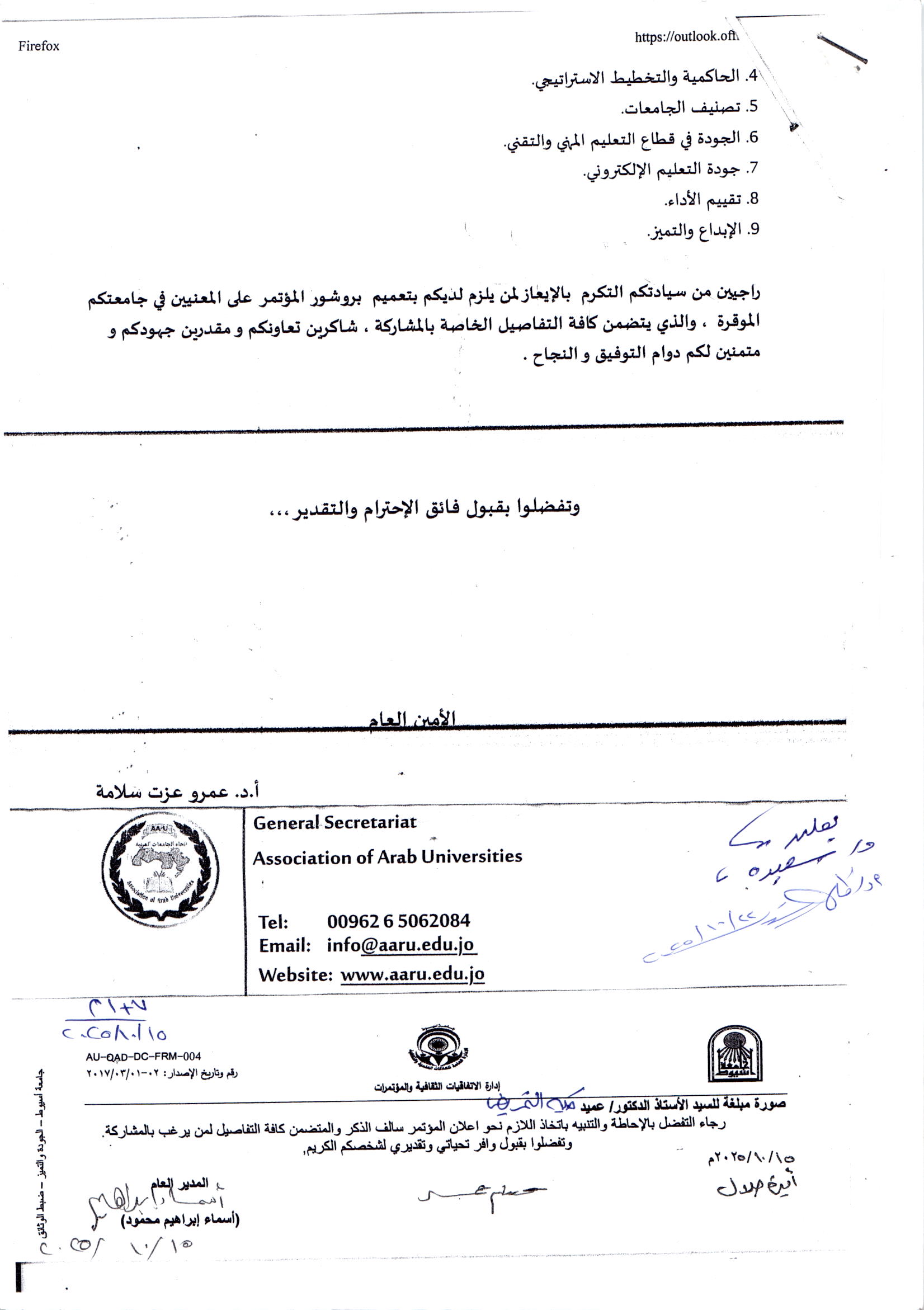 عقد المؤتمر العربي الدولي الثاني عشر لضمان جودة التعليم العالي وذلك خلال الفترة12-14 نوفمبر 2025