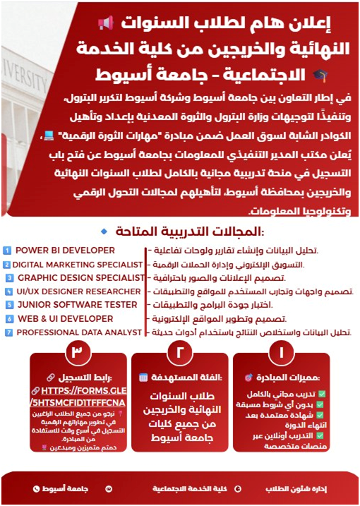 اعلان هام لطلاب السنوات النهائية والخريجين من جميع كليات جامعة اسيوط