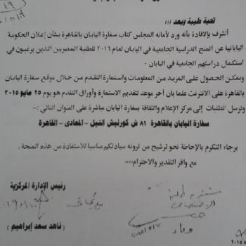 إعلان سفارة اليابان عن المنح الدراسية فى اليابان لعام 2016