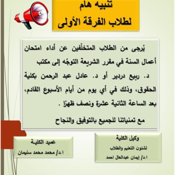 • إعلان هام لطلاب الفرقة الأولى