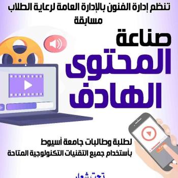كلية الاداب-فعاليات المشاركة في مسابقة صناعة المحتوى الهادف لطلبه وطالبات جامعة أسيوط بإستخدام التقنيات التكنولوجية المتاحة تحت شعار (تعزيز القيم والسلوك المجتمعى والانتماء الوطني)